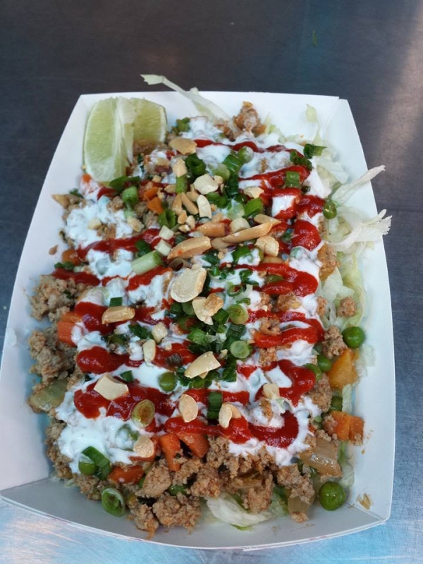 Sweet Indonesian Pulled Pork our signature pork, served with creamy sesame slaw and topped with crunchy rice noodles rice bowl, wrap